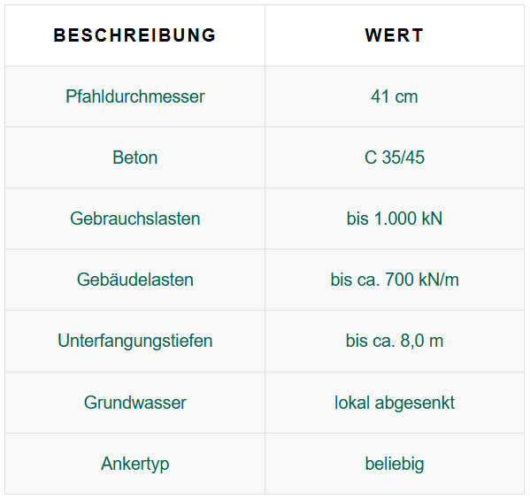 - Extrem deformationsarmes Unterfangungssystem