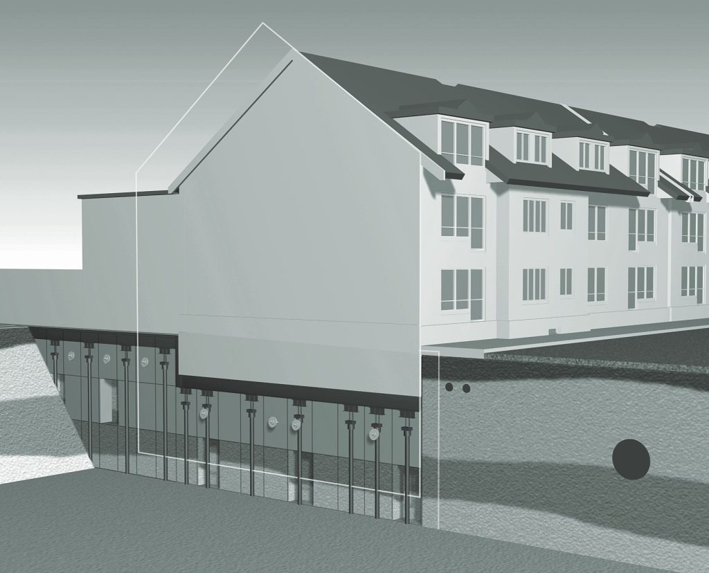 Das ERKA Pfahl Unterfangungssystem ist eine Kombination aus vorab eingepressten Segmentpfählen und einem klassischen Stahlbetonunterfangungskörper. Die Gebäudelasten werden zunächst mittels Vorpressung und Festlegung über die Segmentpfähle aktiv in die neue Gründungsebene geführt. Folgend wird eine Stahlbetonunterfangung ggf. in mehreren Ebenen bis zur erforderlichen Tiefe geführt, ohne dass hierbei weitere Lastumlagerungen im Gebäude erforderliche sind. Damit entsteht ein extrem deformationsarmes Unterfangungssystem, das hohen Ansprüchen gerecht wird.
